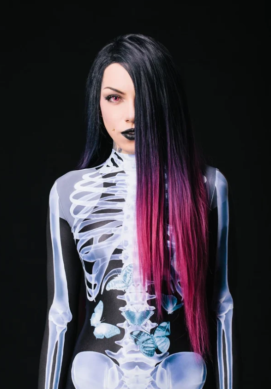 Nuestro disfraz presenta un diseño de esqueleto que va más allá de lo común. Cada hueso y detalle se ha recreado con precisión, ofreciéndote un aspecto que se destaca con autenticidad y estilo. Sin duda, te sentirás como el rey o la reina de la noche.
