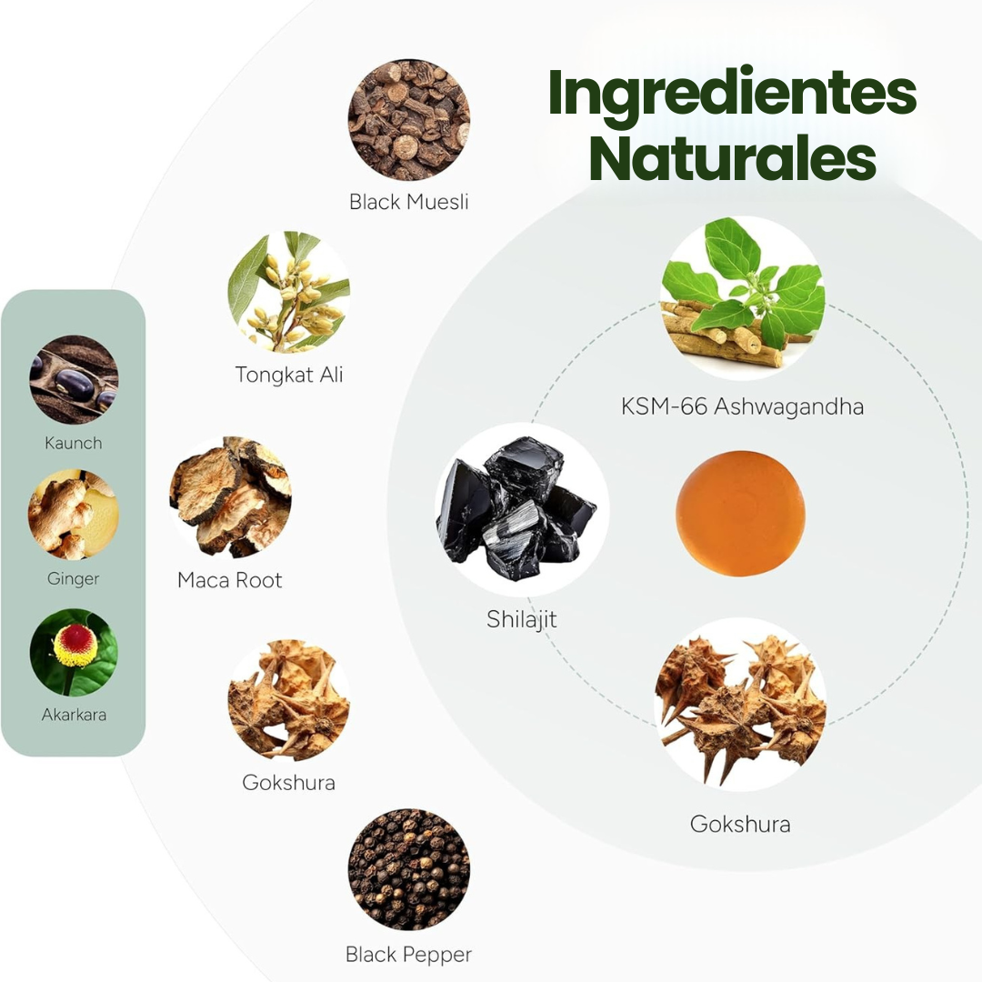 Lo que muchas veces creemos que es "falta de energía imposible de recuperar", en realidad puede potenciarse naturalmente con Shilajit del Himalaya premium, KSM-66 Ashwagandha y adaptógenos de raíz de maca, formulados científicamente para optimizar tu vitalidad.